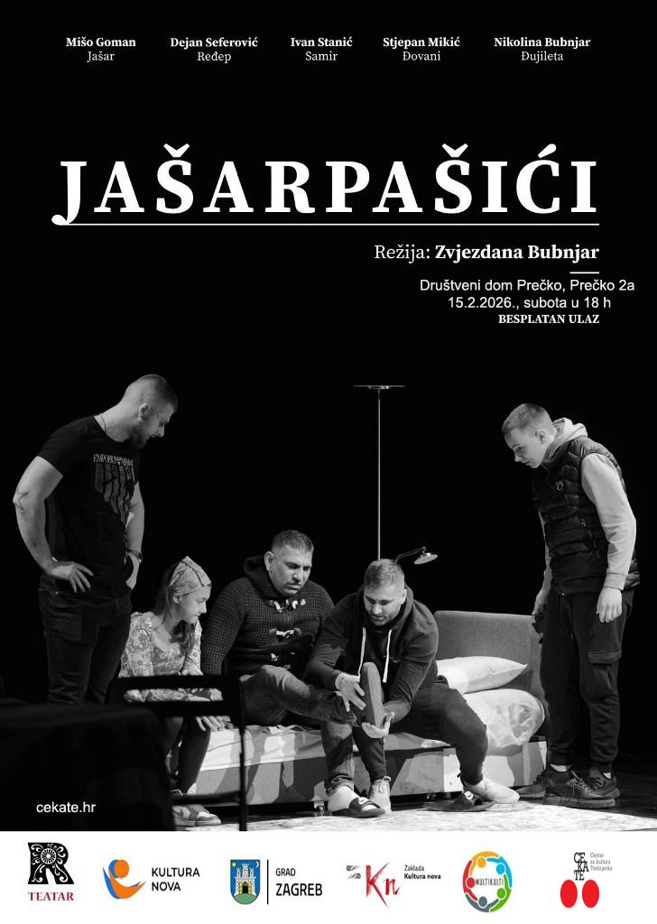 U nedjelju, 15. veljače 2026. u 18 sati, u prostoru Društvenog doma Prečko, publika će imati priliku pogledati kazališnu predstavu Jašarpašići u izvedbi Teatra R, u sklopu Otvorene kazališne scene Društvenog doma Prečko. Predstava donosi razigranu komediju u prepoznatljivom tonu Roma teatra, čiji je cilj razgaliti, nasmijati i povezati publiku kroz toplu obiteljsku priču.