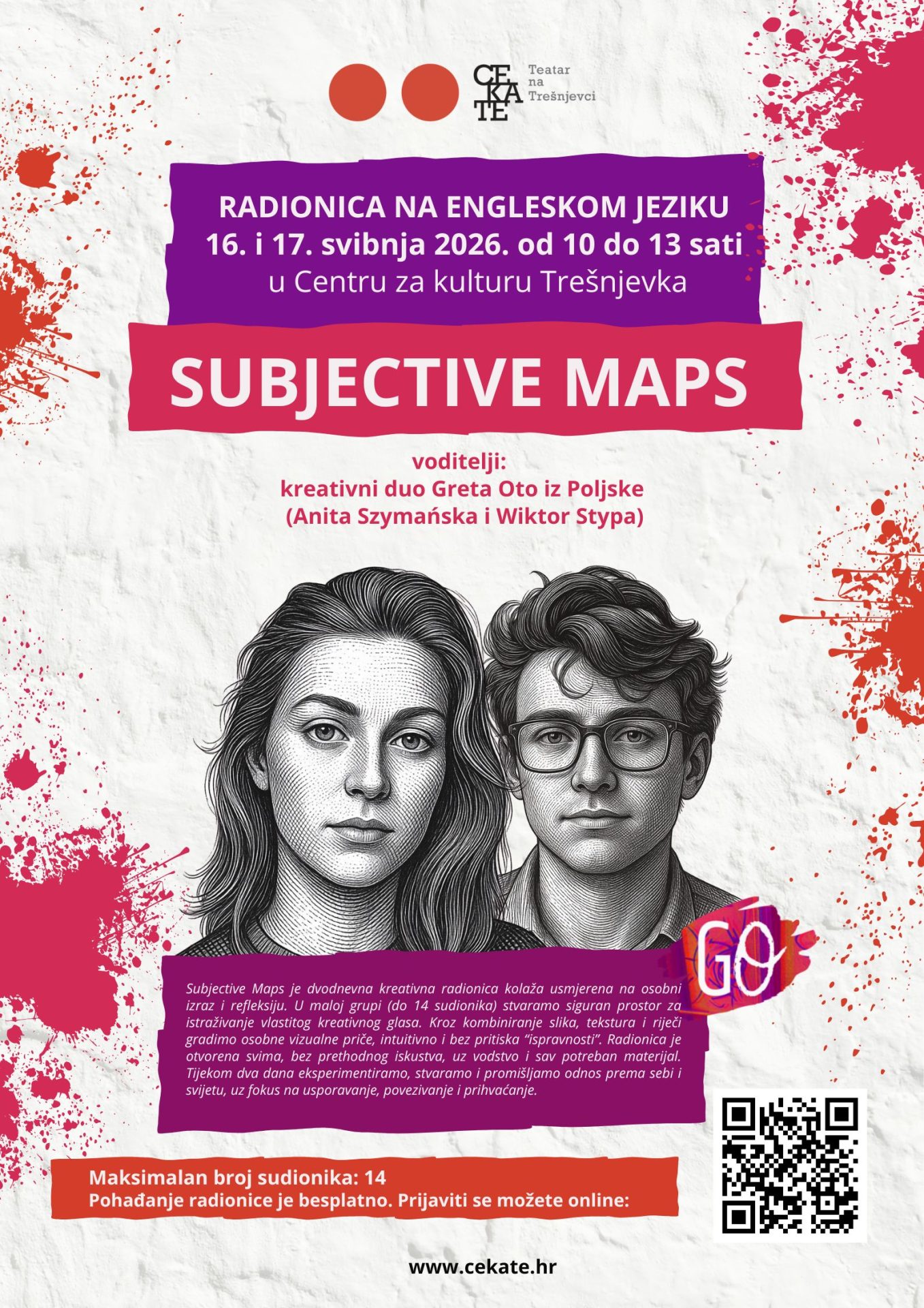 Tijekom dva dana eksperimentiramo, promišljamo i stvaramo radove koji istražuju odnos prema sebi i svijetu oko nas. Ovo je prostor za usporavanje, povezivanje i vježbanje prihvaćanja – prema sebi i vlastitom kreativnom procesu.
