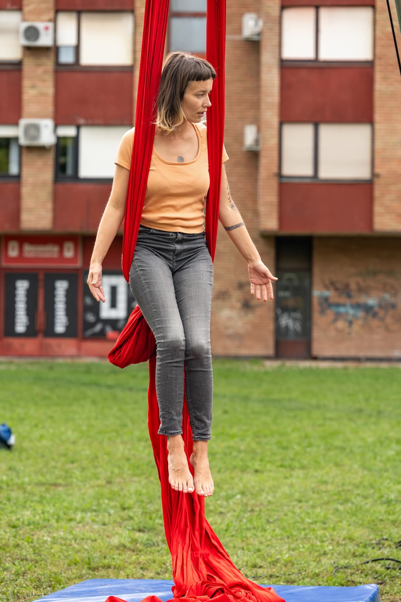 CeKaTe organizira trening plesa i zračnih akrobacija za djecu i mlade, na kojem će se polaznici upoznati s osnovnim elementima akrobatskih tehnika u zraku – na tkanini (svili).