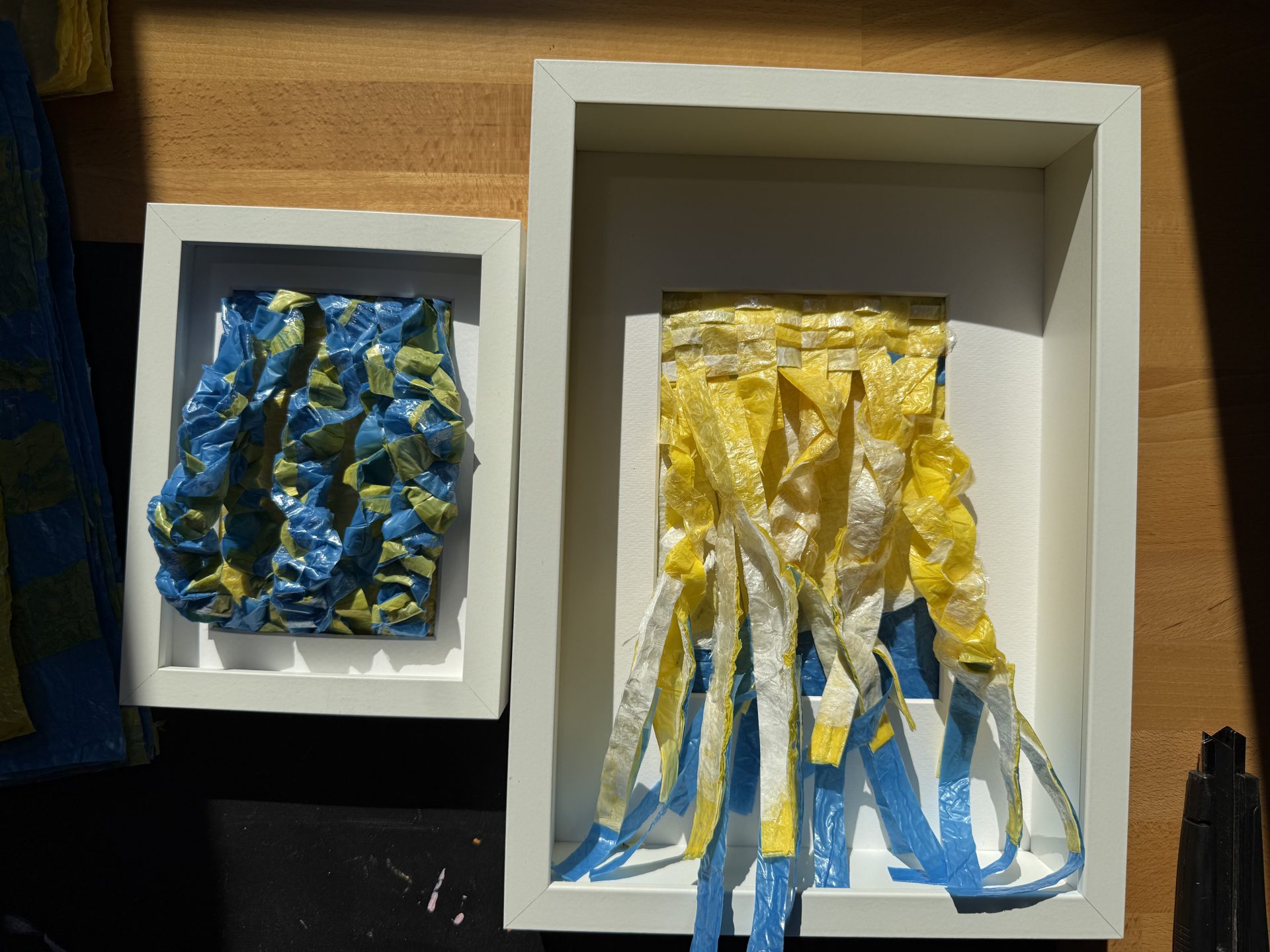 Osim što sudjeluje na UPSET ART festivalu već godinama, Lucija uspijeva osvojiti nagrade za vizual festivala (2023 i 2025). Svaka čast! Ove godine sudjeluje s malo više “fizičkim” radovima. Svi radovi imaju svoje okvire, kolekcija ima i dva ženska korzeta-bodia od vrećica.