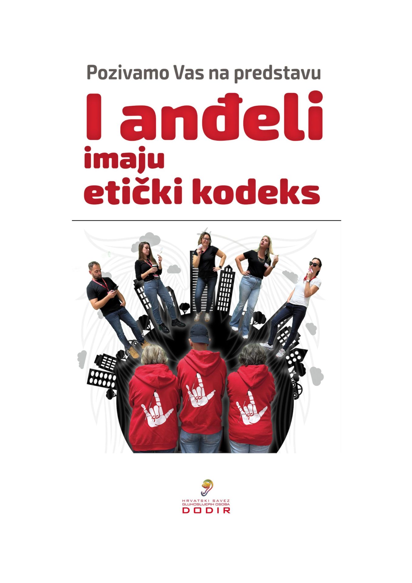 - 14.50-15.50h Priča o nama: I anđeli imaju etički kodeks /PREDSTAVA/ Dramski studio Dodir(i) Hrvatskog saveza gluhoslijepih osoba Dodir (60 min)